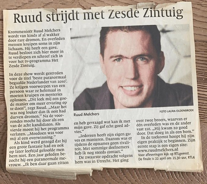 Ook komt hij in deze periode een advertentie tegen van het televisieprogramma HET ZESDE ZINTUIG van RTL4, die deelnemers zocht voor serie beste paragnost van 2010.